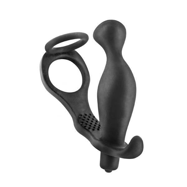 • Anillo con estimulador anal con vibración realizado en silicona suave en color negro.